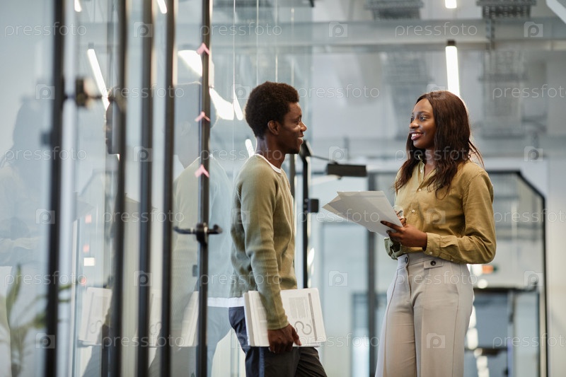 Деловые коллеги в офисном коридоре