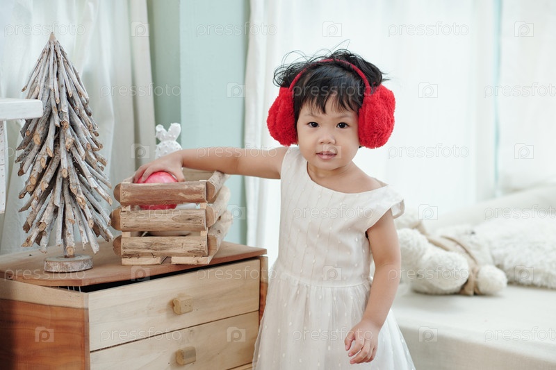 Маленькая девочка в красных наушниках