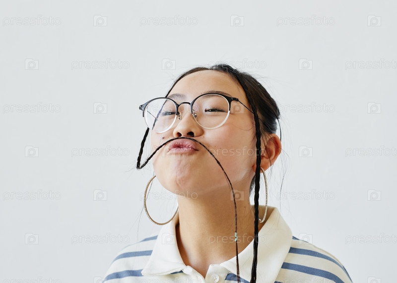 Подростковая девушка делает смешные лица