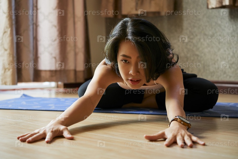 Женщина, практикующая переплетение ног вперед