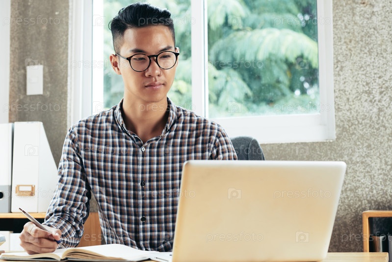 Улыбающийся молодой бизнесмен в очках