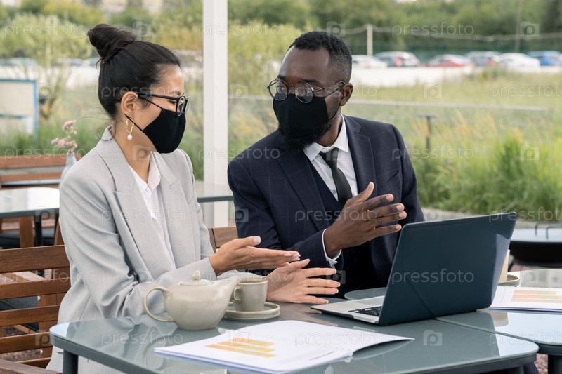 Два молодых брокера обсуждают материалы для презентации
