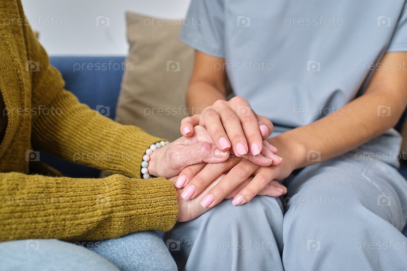 Медсестра поддерживает пожилую женщину