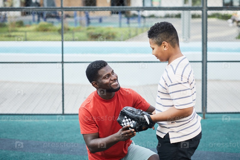 Счастливый отец разговаривает со своим сыном