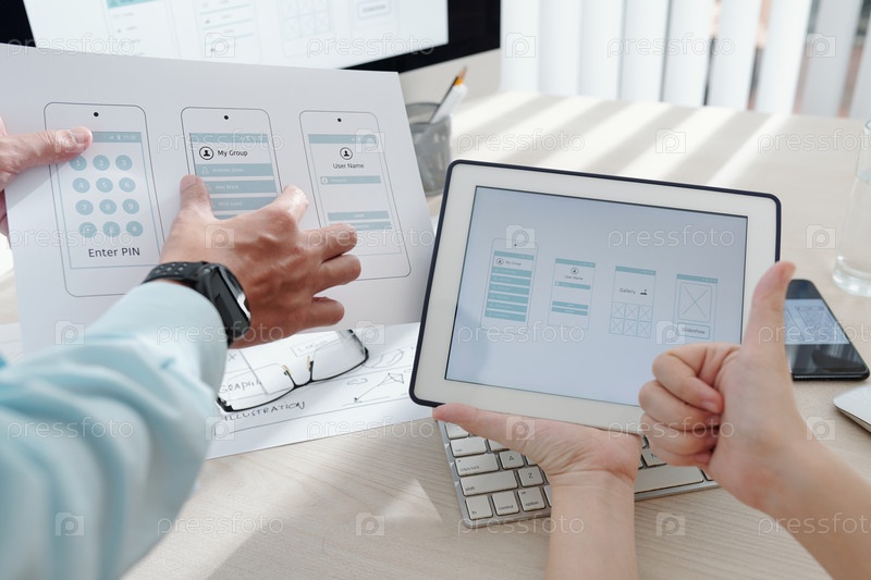 Менеджеры обсуждают мобильный интерфейс