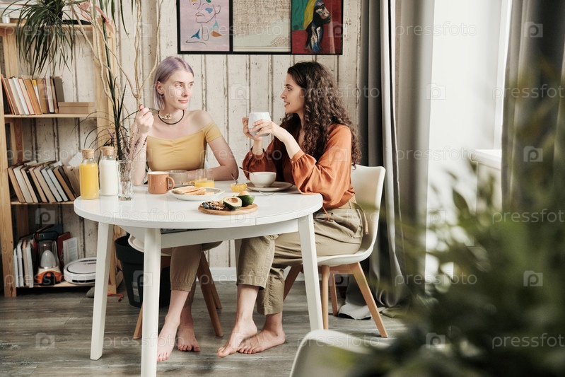 Лесбиянки беседуют во время завтрака