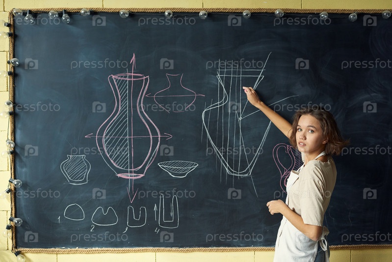 Учитель по керамике рисует на доске
