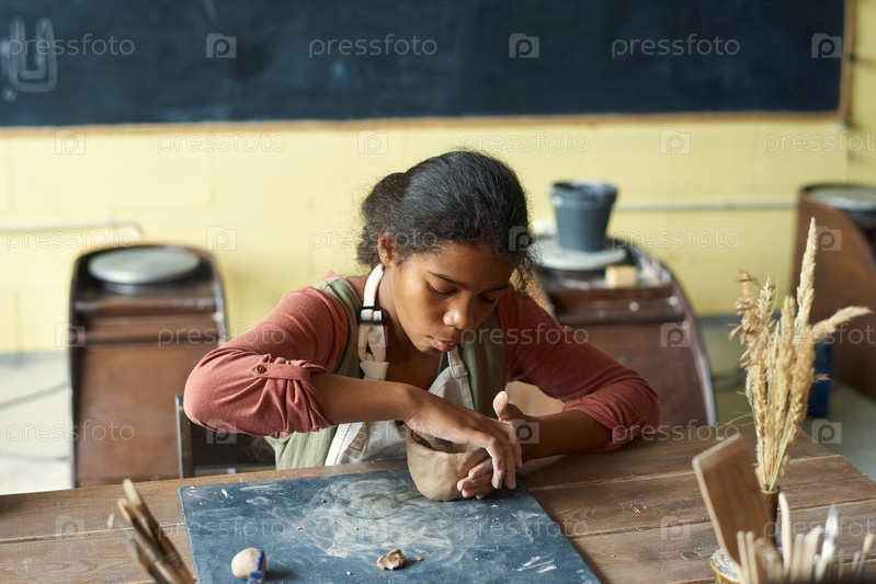 Концентрированная чернокожая девочка скульптурный горшок