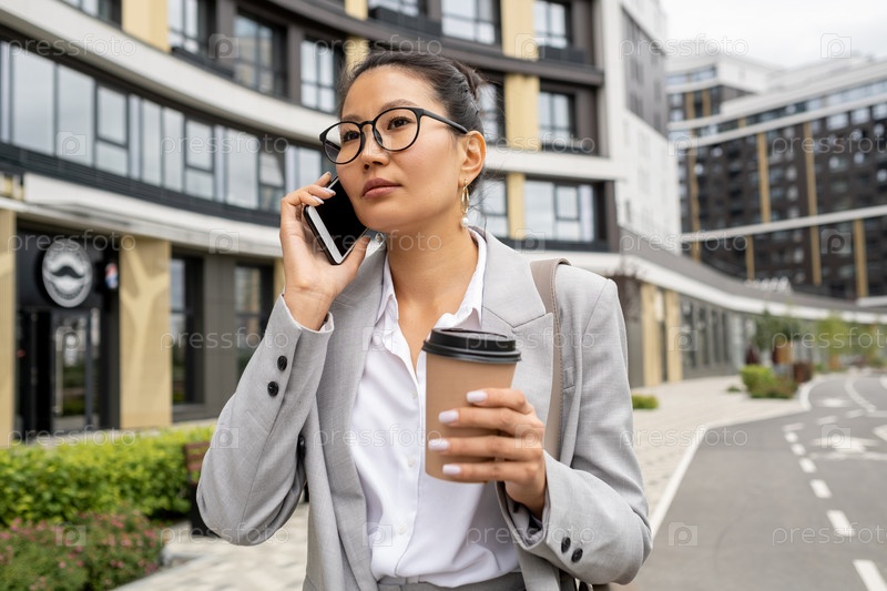 Молодой элегантный бизнес-агент консультирует клиента по мобильному телефону