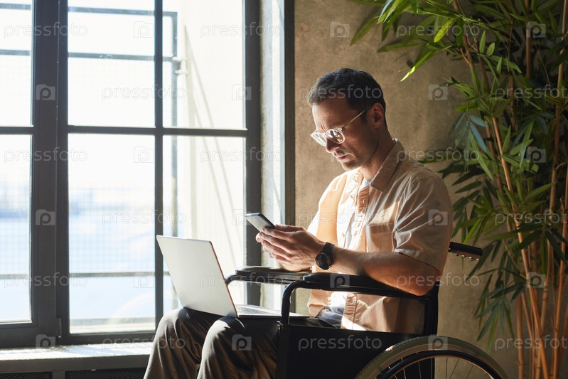 Успешный мужчина с инвалидностью, работающий
