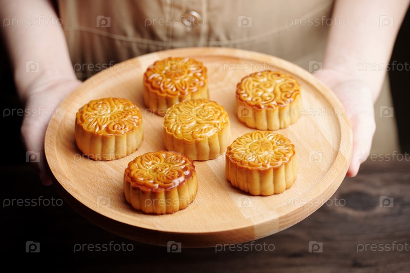 Поднос с красивыми лунными пирожками