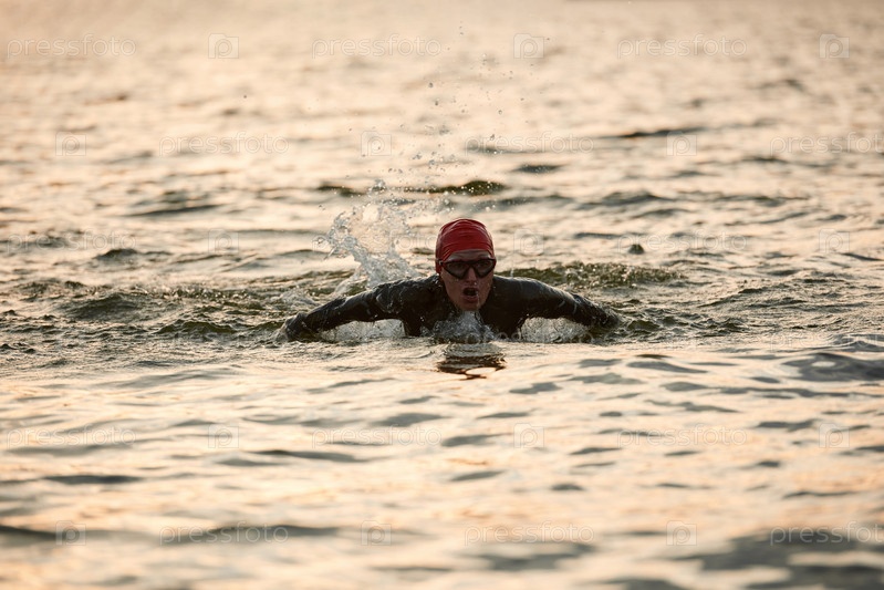 Женщина, тренирующаяся плавать в море