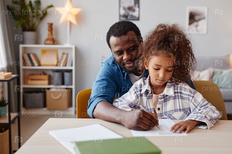 Счастливый отец помогает с домашними заданиями