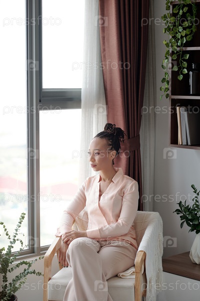 Черная женщина сидит на стуле дома
