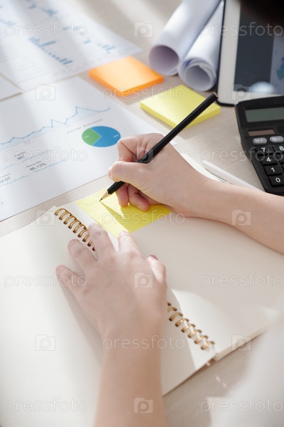 Предприниматель пишет на клейкой записке