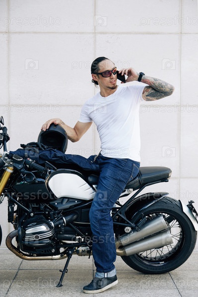 Мотоциклист разговаривает по телефону