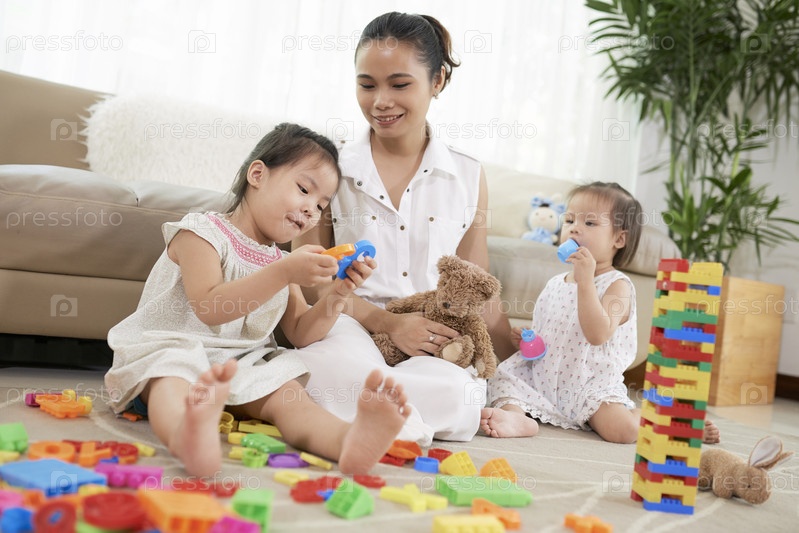 Оставайся дома мама играет с детьми