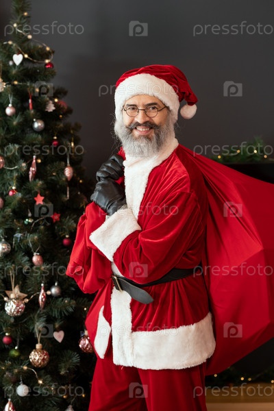 Улыбающийся Санта с украденными подарками