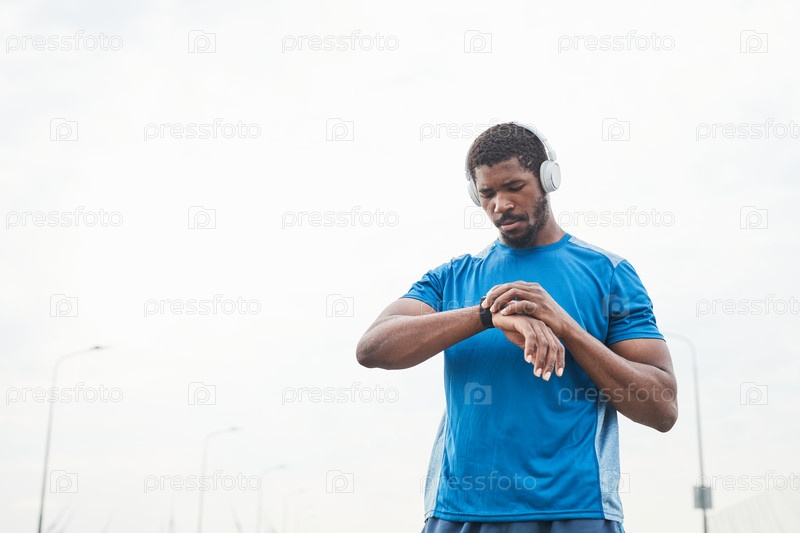 Мужчина, использующий фитнес-браслет во время тренировки