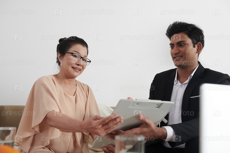 Страховой агент, помогающий старшему клиенту