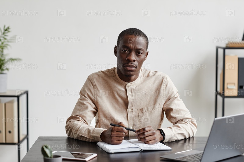 Портрет чернокожего предпринимателя за рабочим столом