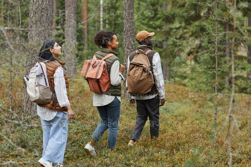 Друзья, путешествующие в лесу