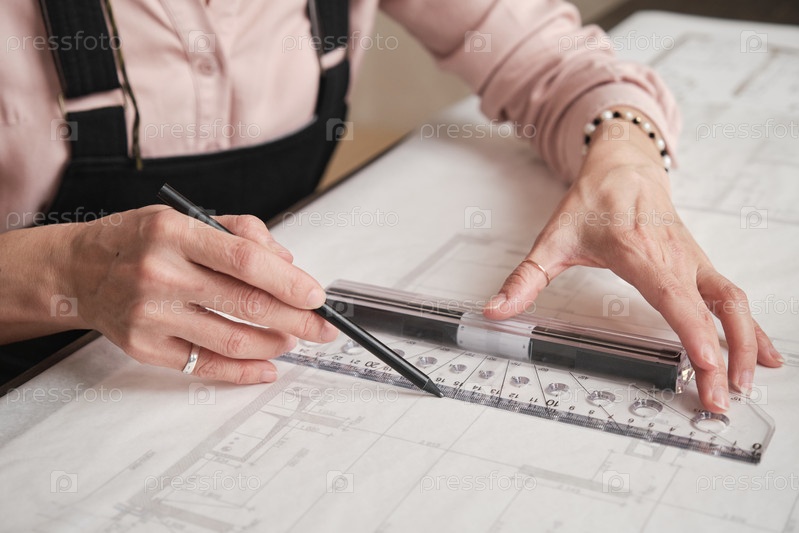 Женские руки создают технический рисунок
