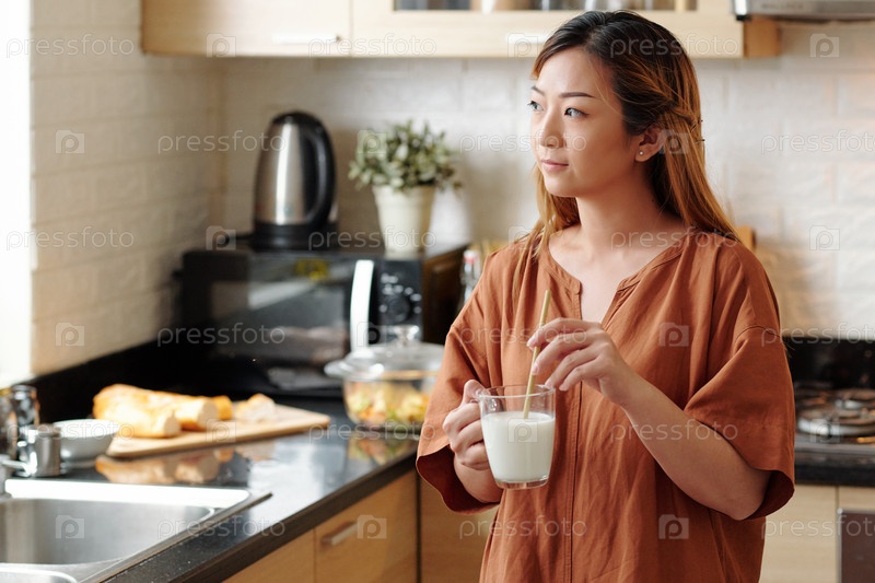 Женщина, наслаждающаяся питьем молока