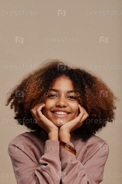 Улыбающаяся молодая женщина с натуральными волосами