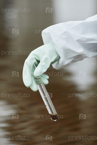 Ученый, отбирающий образец воды вблизи