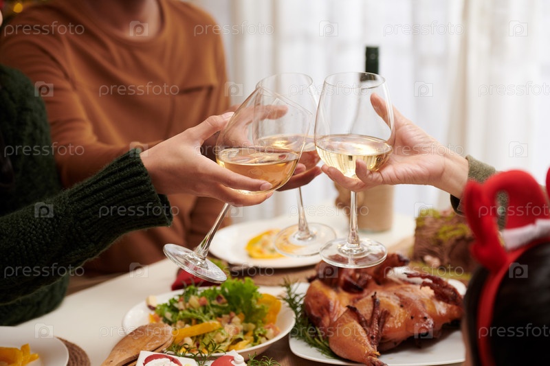 Гости хлопают стаканами вина