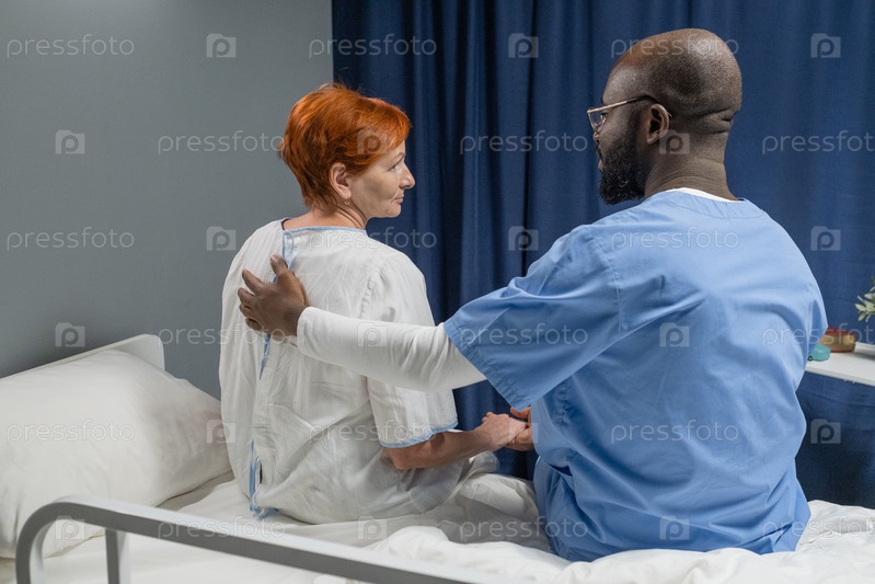 Врач разговаривает с пациентом в палате