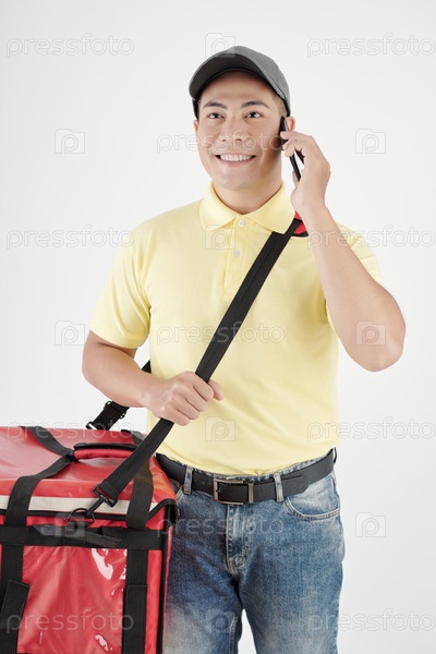 Доставщик разговаривает по телефону с Кутомером