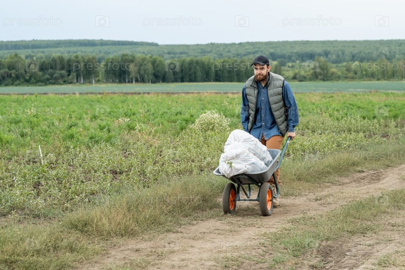 Farmer Pushing Wheelbarrow Фермер, толкающий тележку