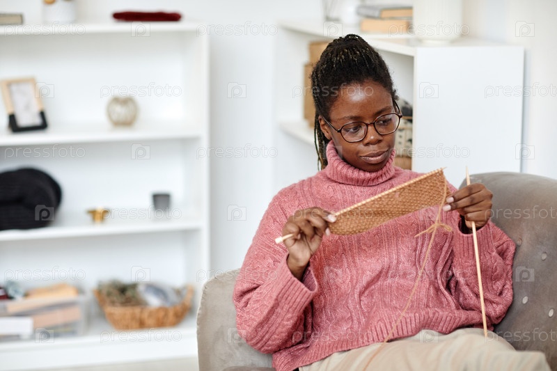 Афроамериканская женщина вяжет