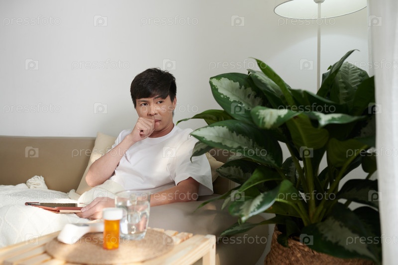 Больной человек, использующий приложение телемедицины