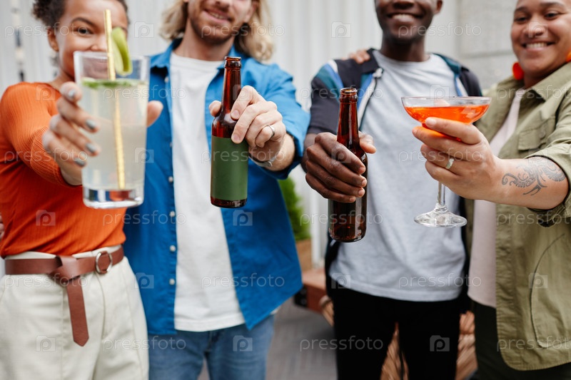 Друзья держат напитки на крыше вечеринки