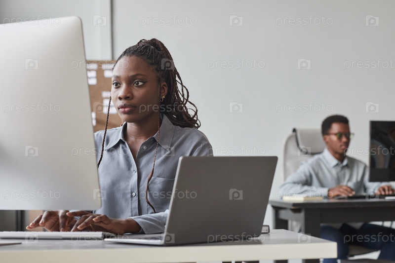 Молодые люди, использующие компьютер на работе