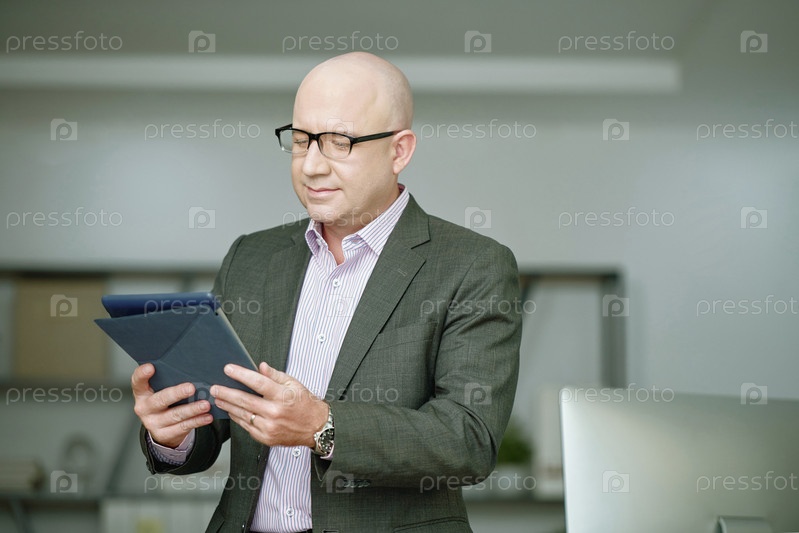Бизнесмен, работающий онлайн на планшетном компьютере