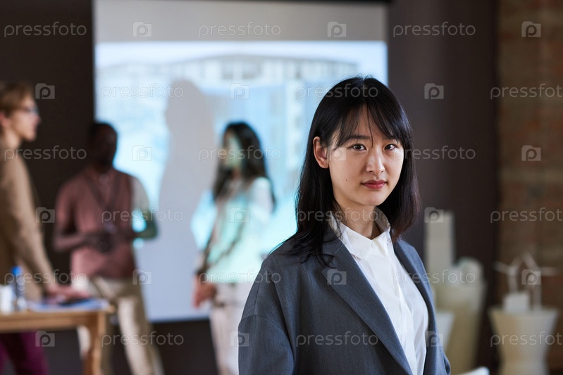 Молодая азиатская бизнесвумен в офисе
