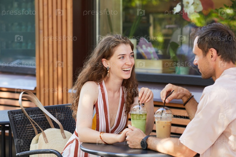 Счастливая пара в открытом кафе