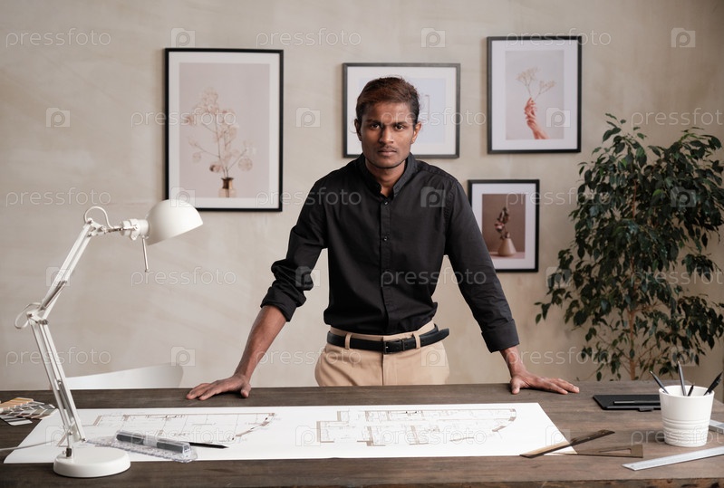 Черный инженер в современном офисе