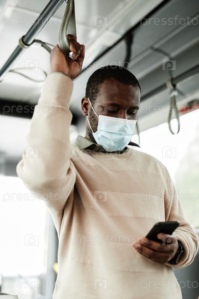 Африканский американец, носящий маску в автобусе
