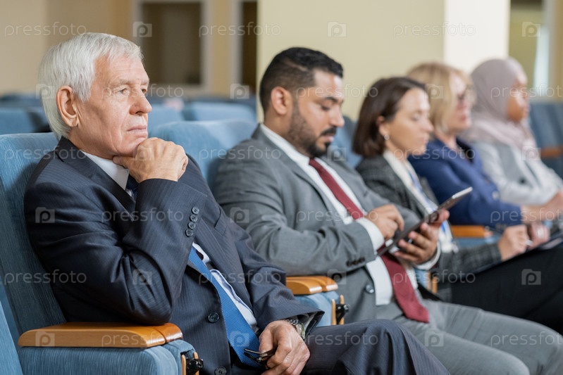 Высокопоставленный бизнесмен или политик в формальной одежде слушает оратора