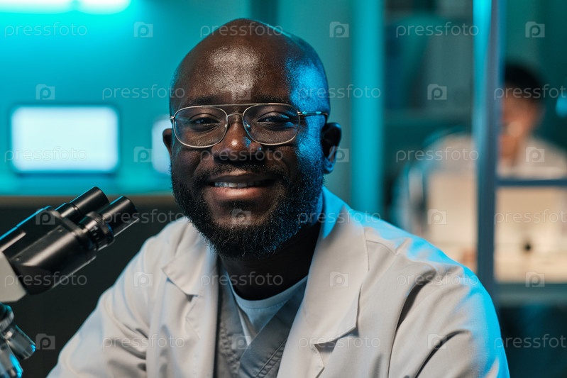 Молодой успешный мужской ученый или исследователь смотрит на камеру