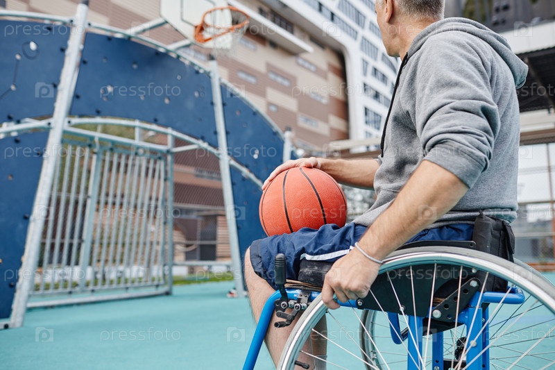 Человек с инвалидностью играет в баскетбол