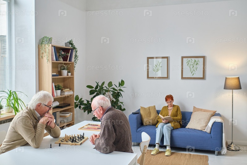 Пожилые люди проводят время в доме престарелых