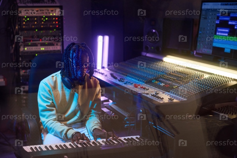 Музыкальный продюсер, работающий в студии звукозаписи