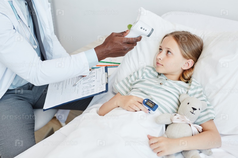 Врач проверяет температуру ребенка в больнице