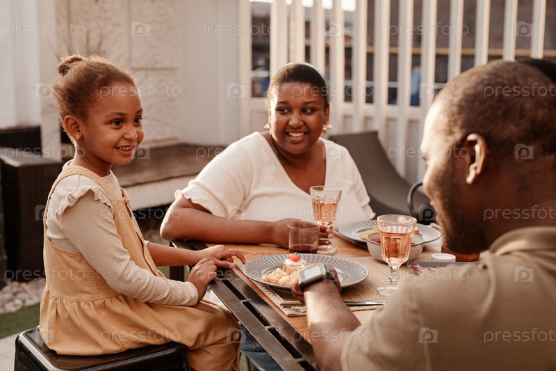 Афроамериканская семья обедает вместе
